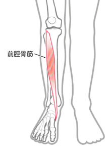 すねの硬い骨の外側にある筋肉で、足首を反らせる働きがあります。