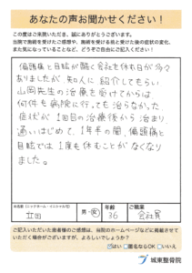 何件も病院に行っても治らなかった症状が、1回目の治療後から治まり