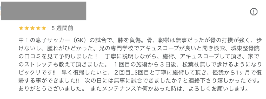 【13歳 男性 膝負傷】試合で膝を負傷、松葉杖が必要な状態から2週間でサッカー復帰!